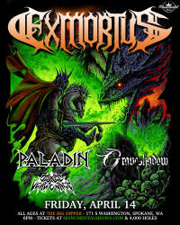 Raise your swords for an epic night of circle pits and headbangs fit for all ages with an onslaught of riffs by EXMORTUS from Los Angeles joined by PALADIN from Atlanta, GRAVESHADOW from California and our friends TOXIC VENGEANCE from right here in Spokane! Don't miss this Friday night of awesome metal conquest!