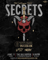 Secrets makes a long-awaited return to Spokane on a Sunday night to present American Metalcore in a stacked line up featuring Outline In Color, VRSTY and Nerv! Secrets have made quite a name for themselves, forming a little over 10 years ago and reaching notable success with audiences all over the world with their releases and live performance. With a new album released in 2022, they have a lot to show Spokane what they've been up to. Don't miss this great show!