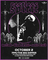 Restless Spirit from New York brings their sonic landscape of Sabbathian stoner doom to Spokane for the first time joined by Merlock, Black Locust and Sonic Druid