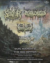 Ov Sulfur has become one of America's fastest rising metal bands in recent years and Spokane stands way in their sonic assault. Carrying support by three other note-worthy bands from around the globe Mental Cruelty from Germany, Ghost Bath from North Dakota and Extermination Dismemberment from Belarus - converging together for this event making it unforgettable. It would not be wise to miss this rare opportunity to catch these bands