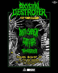 An invasion takes place as two tours converge upon the Lilac City for one epic show as OXYGEN DESTROYER stomps through the Northwest at the same time NY grimy death grinders Anti-Sapien and Colombian thrashers Perpetual Warfare crash the party. But just when you thought it couldn't get any more out of control, Spokane death dealers Tomb Ripper support the bill! This is one metal event not to miss!