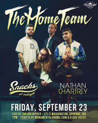 The Home Team returns to Spokane for a fun Friday night on their way to meet with Real Friends to begin tour! They will be showcasing their new material they've released over the past few years that has been achieving a lot of success - along with some older familiar songs too! Joining them will be Spokane-based outfit Snacks At Midnight alongside our friend Kaleb J. to complete this awesome fun-filled night for all ages!