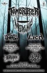 Tomb Ripper and Misery Whip team up to destroy Ray's Golden Lion for a stacked all ages metal show joined by Bent Outta Shape, Lich and new Tri Cities band Lesser Gods!
